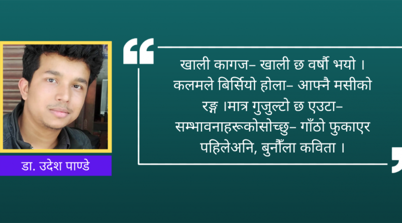 Read moreडा. उदेश पाण्डे गोंगबु, काठमाडौँ एउटी चरी एकाबिहानै आइपुग्छे झ्याल अगाडि र, गीत सुनाउछे आफ्नो– अनि भन्छे– “अब तिम्रो पालो