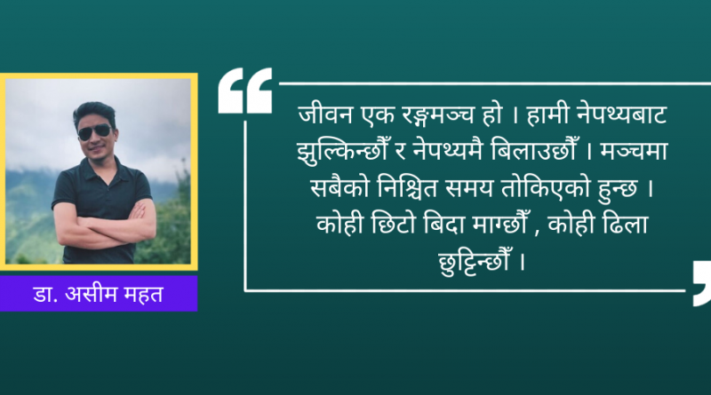Read moreडा. असीम महत सालकोट अस्पताल सुर्खेत जीवन एक रङ्गमञ्च हो । हामी नेपथ्यबाट झुल्किन्छौँ र नेपथ्यमै बिलाउछौँ